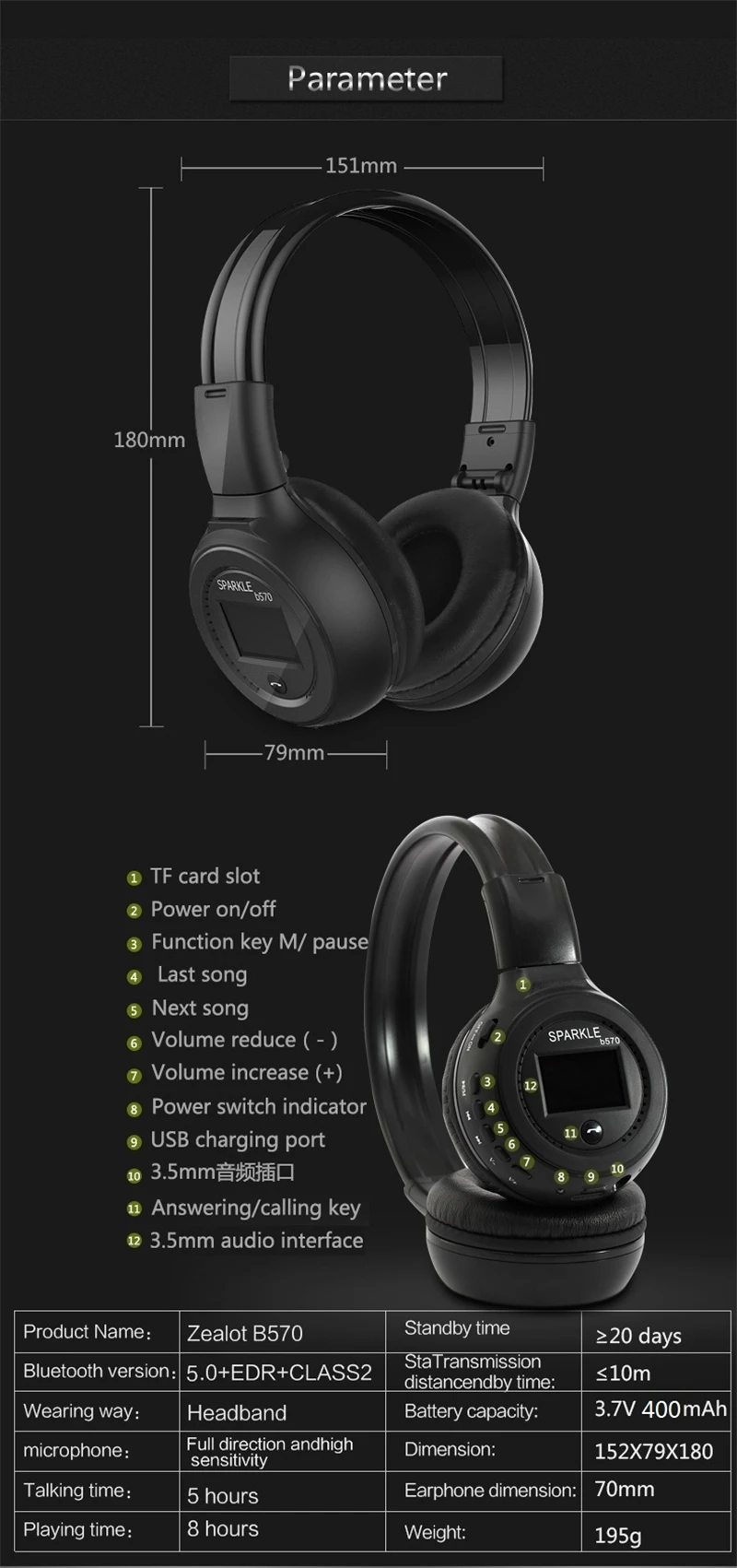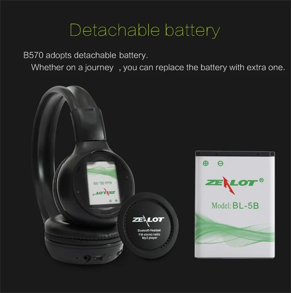 Zealot B570 Bluetooth наушники с fm-радио ЖК-дисплеем стерео беспроводные наушники Handfree гарнитура Bluetooth для телефона ПК