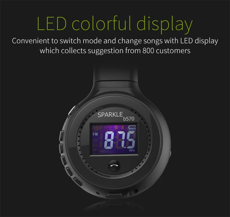 Bluetooth-стереонаушники ZEALOT B570 складные, с ЖК-дисплеем
