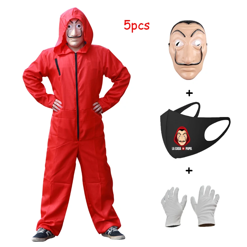 Костюмы на Хэллоуин 5 шт., прикрепленная маска для лица из фильма Сальвадора Дали, для взрослых и детей, для вечеринки, ограбление денег, бумажный дом, косплей