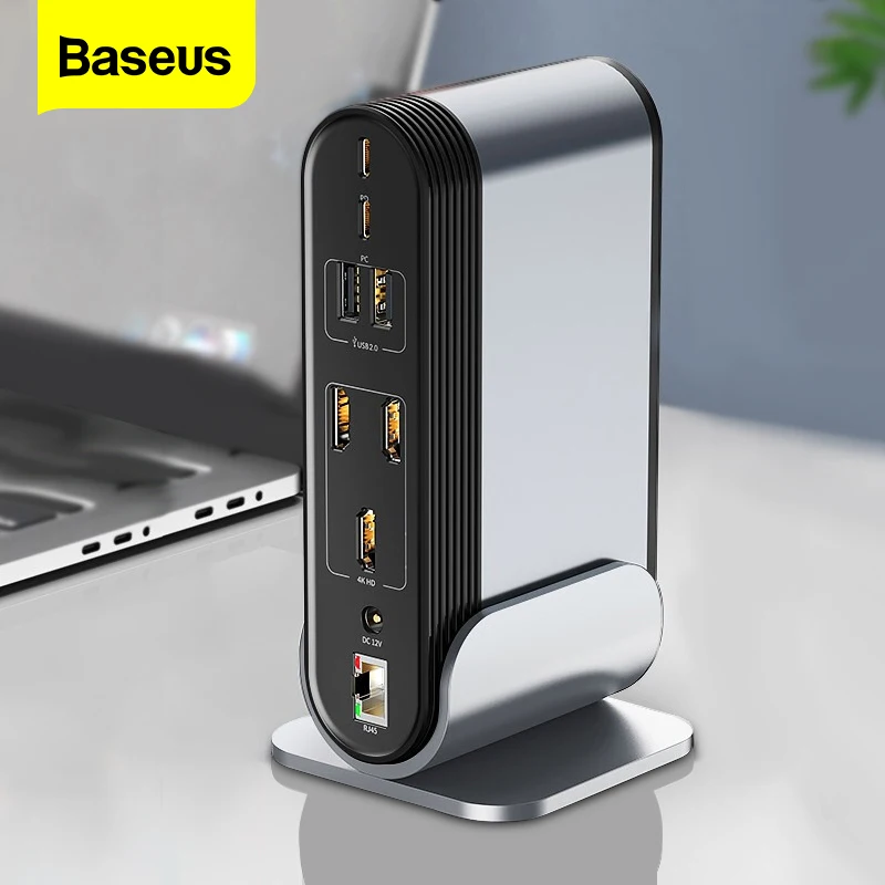 USB-концентратор Baseus 17 в 1 с Type C на HDMI-совместим с RJ45, VGA, SDTF-кардридером, USB 3,0, адаптер питания PD, док-станция для Macbook pro