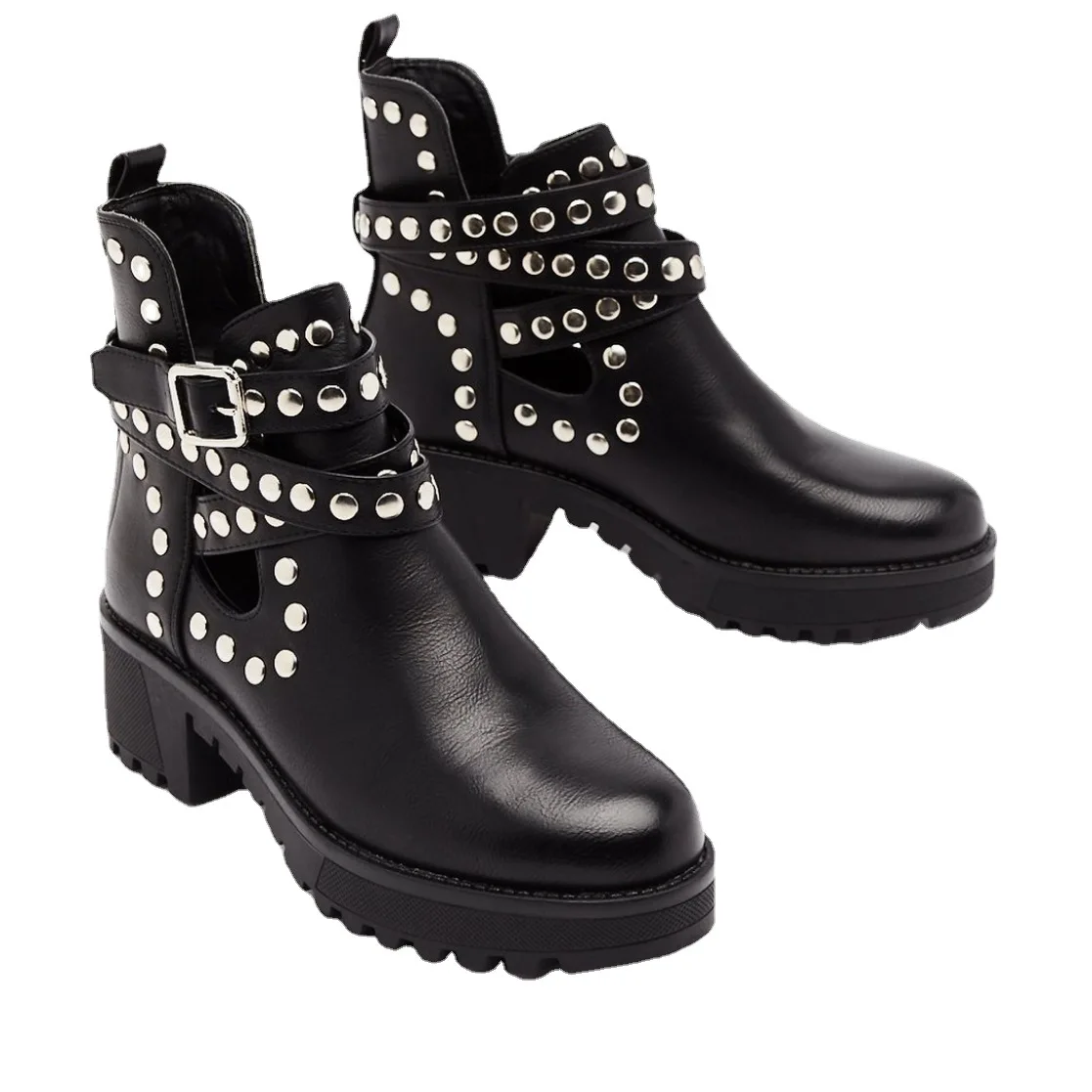 Женские короткие ботинки, женские кожаные ботильоны, осенняя мотоциклетная обувь на платформе для женщин, обувь в стиле панк с жемчугом и заклепками, большой размер 43