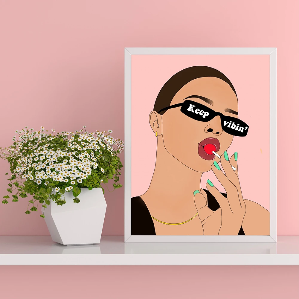 Винтажная розовая Картина на холсте Феминистская художественная Цит...
