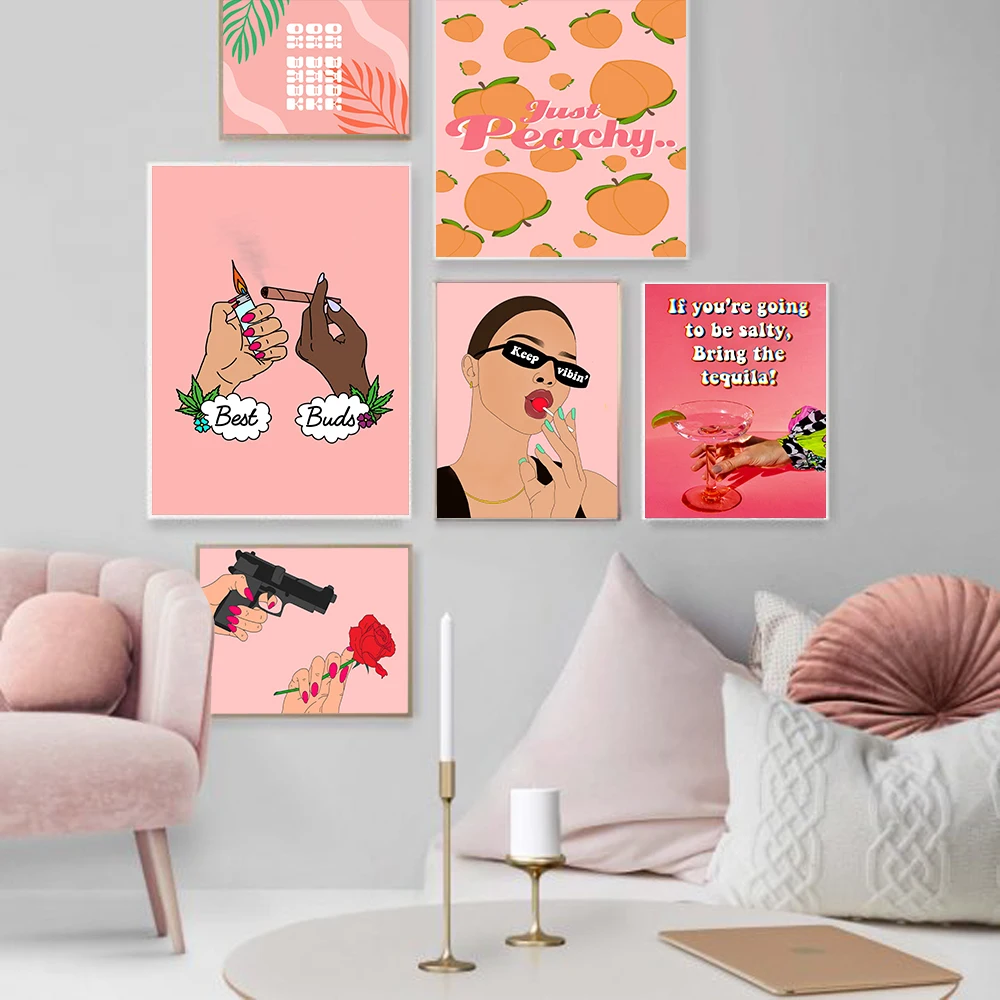 Модные Розовые эстетические постеры с цитатами, картина на феминизм, ретро Элегантные настенные художественные принты, холст с рисунком для ванной, бара, кровати, домашний декор