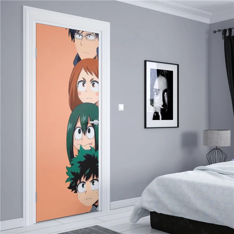 Декоративные двери HD, японское аниме Моя геройская академия, самоклеящиеся водонепроницаемые дверные наклейки, плакаты, настенные наклейки, украшение детской комнаты