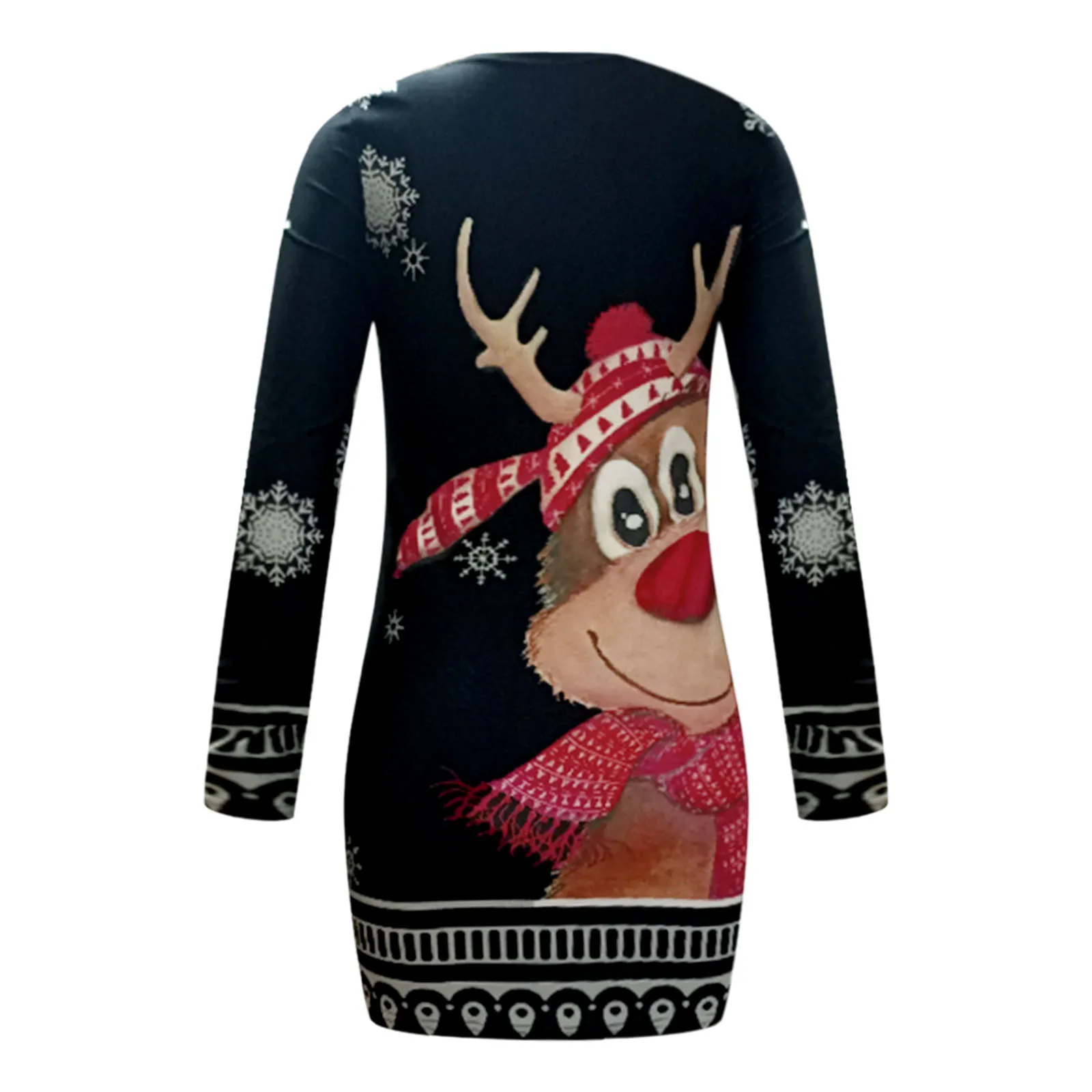 Женское рождественское платье, женское модное Повседневное платье с круглым вырезом, пуловер, свитшоты, платье на осень и зиму, женское платье D4
