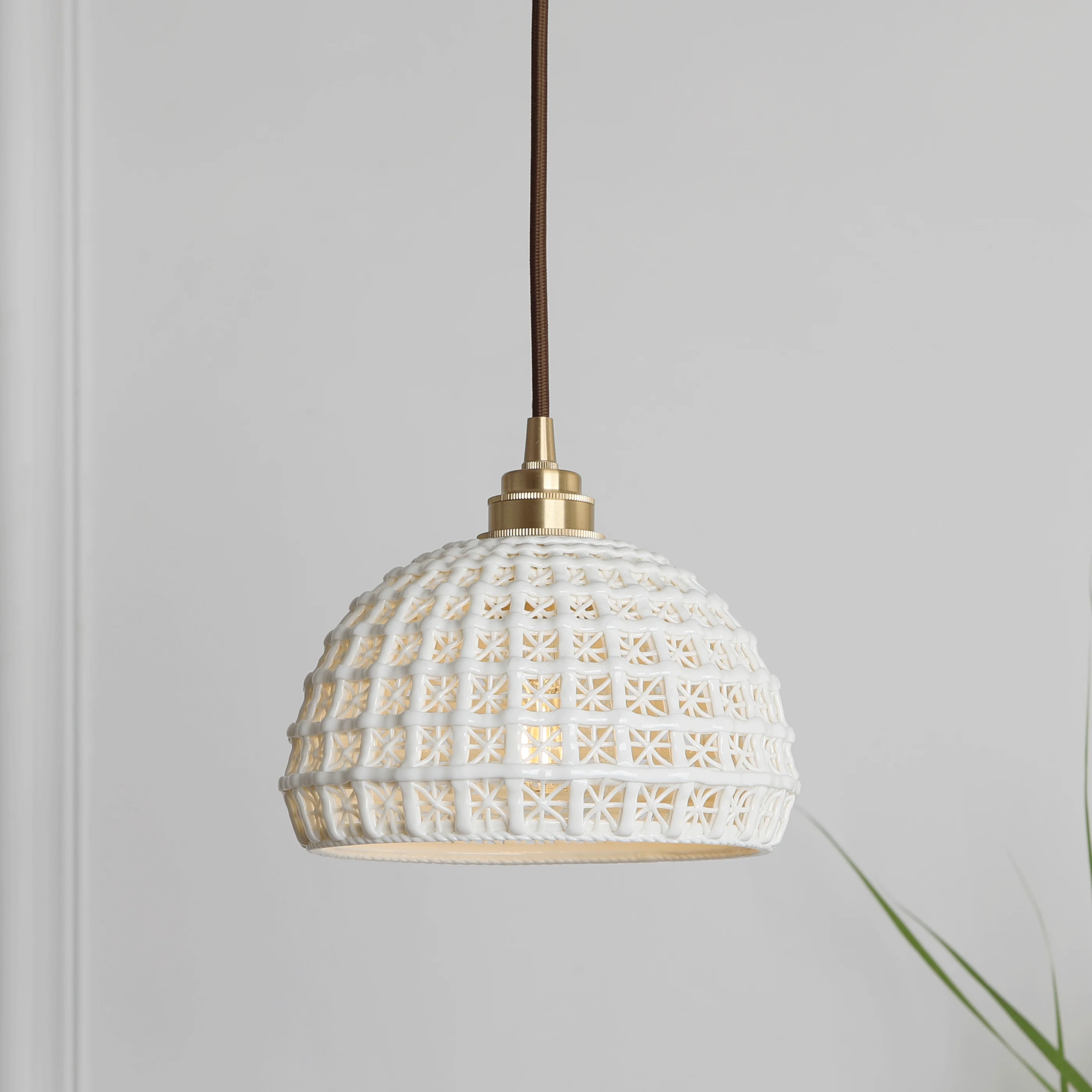 Минималистичная ретро люстра в скандинавском стиле с одной головкой, японские подвесные светильники в стиле Дзен, американский, керамический латунный светильник для прихожей и коридора