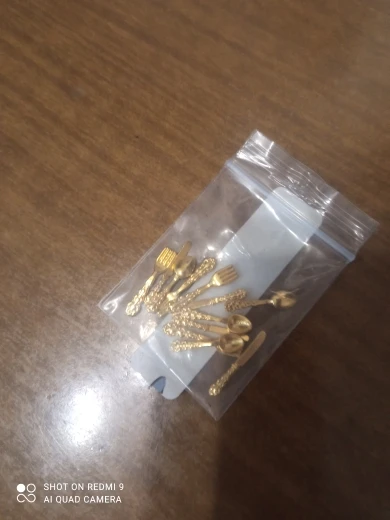 Очень реалистичные столовые приборы. Но я ожидала, что они побольше размером. Такие крошечные детям давать нельзя, их проглотить ничего не стоит. Пусть лежат, пока внучка не подрастет