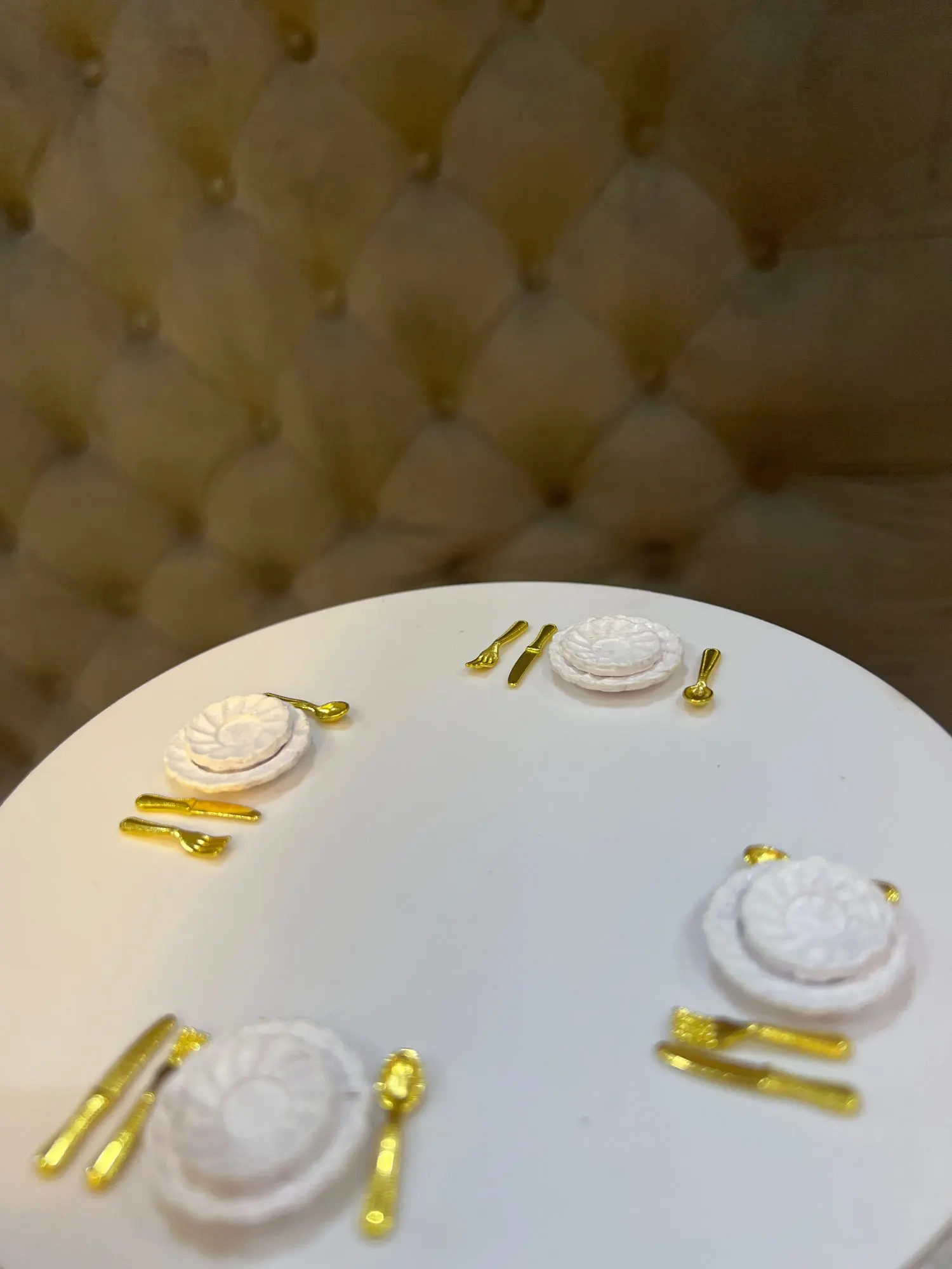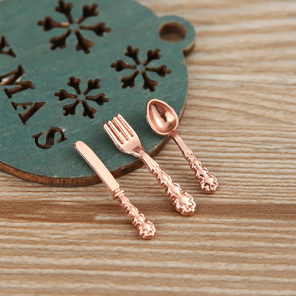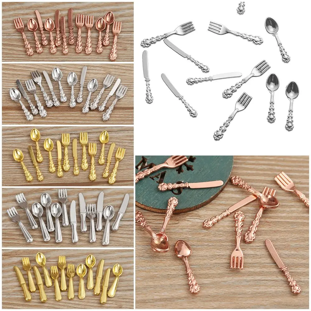 Миниатюрная посуда в масштабе 1:12, металлическая, золотая, серебряная, имитация, мини-столовые приборы, вилка, нож, ложка, кукольный домик, мебель, аксессуары для кукол