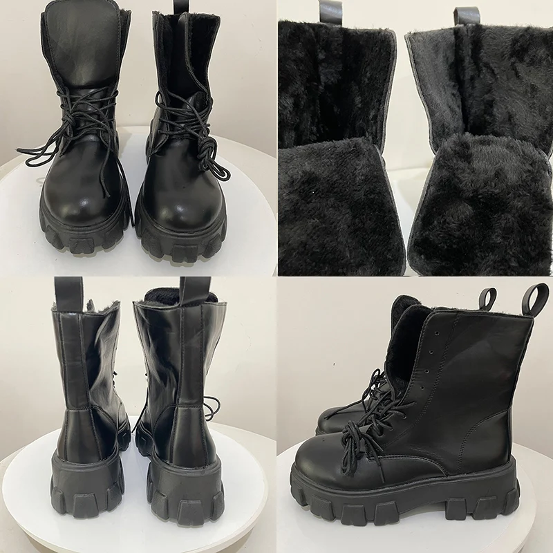 Женские ботильоны на массивной платформе, теплые плюшевые ботинки из искусственной кожи на толстой подошве, со шнуровкой, Осень-зима 2021