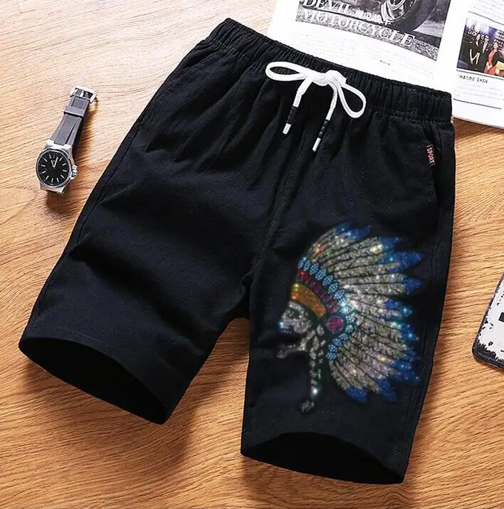 Летние Новые повседневные шорты, мужские пляжные дышащие быстросохнущие свободные шорты, мужская мода стразы, короткие шорты, мужские шорты