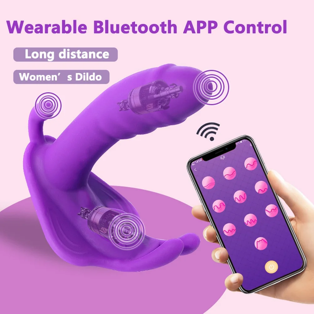 Женский фаллоимитатор, вибратор-бабочка, женский фаллоимитатор с дистанционным управлением через приложение и Bluetooth, женские вибраторы для женских пар