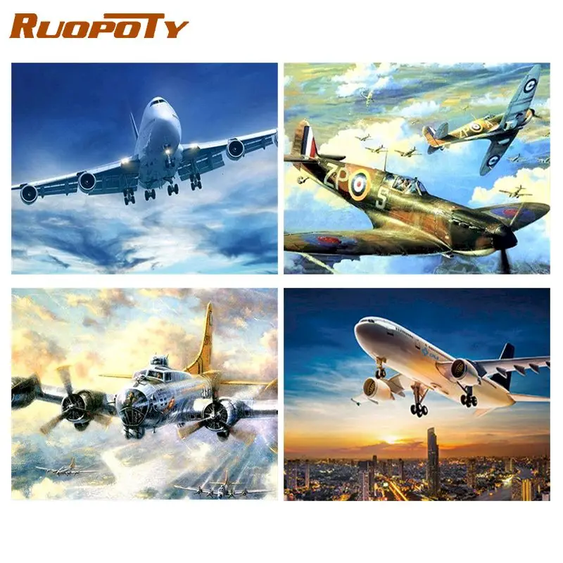 RUOPOTY Sky картина с изображением самолета по номерам, Diy нулевая основа, живопись по номерам, пейзаж, стена на холсте, домашний декор, подарок