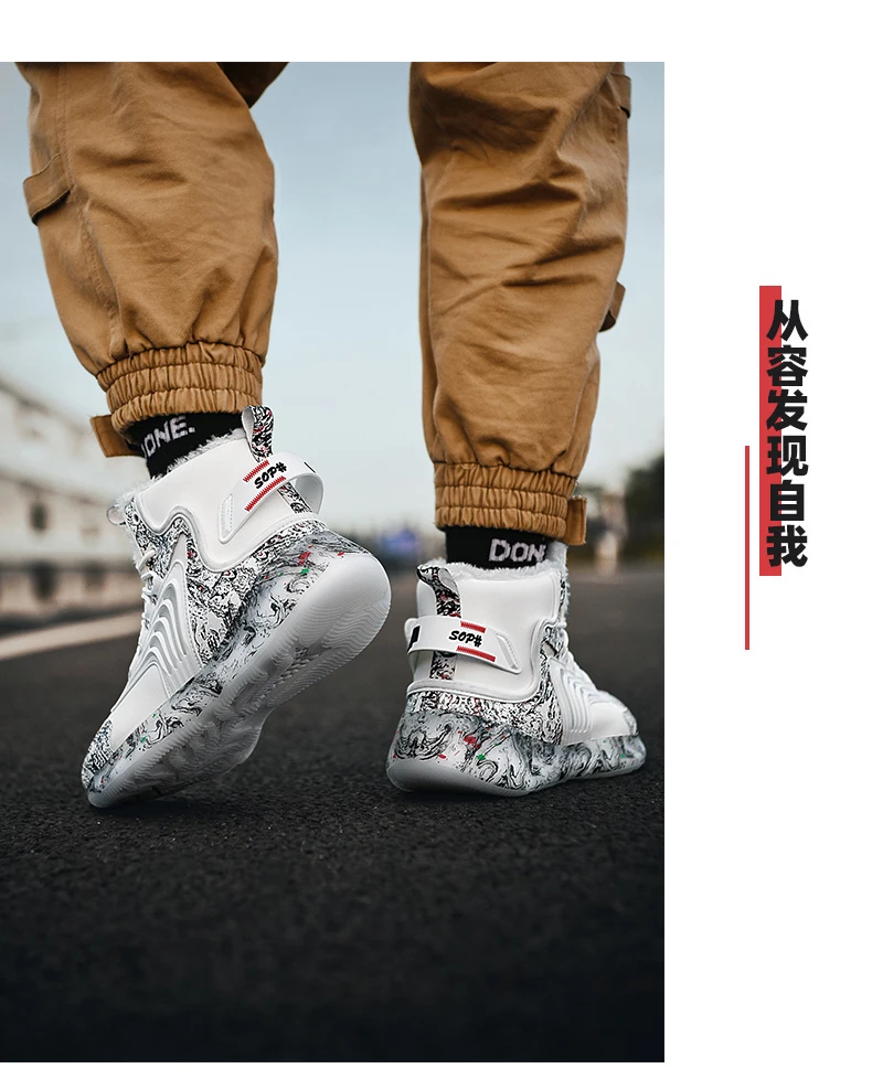 Высокие зимние сохраняющие тепло беговые кроссовки, мужская модная спортивная обувь, водонепроницаемые Нескользящие плюшевые кроссовки, мужская прогулочная обувь из хлопка