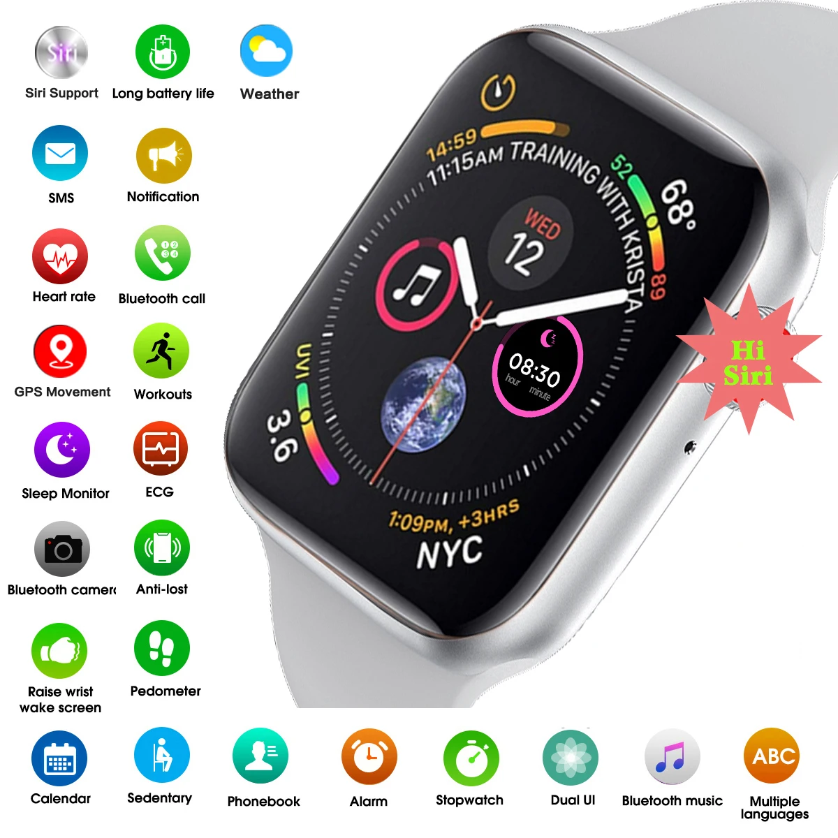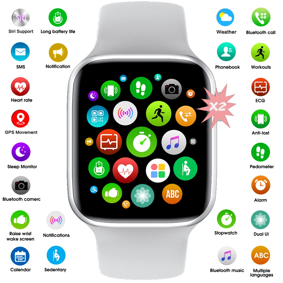 Умные часы Siri с поддержкой Bluetooth, звонков, GPS, движения, умные часы X2 для мужчин и женщин, дневной режим ожидания, часы, умные часы, IWO, наручные часы