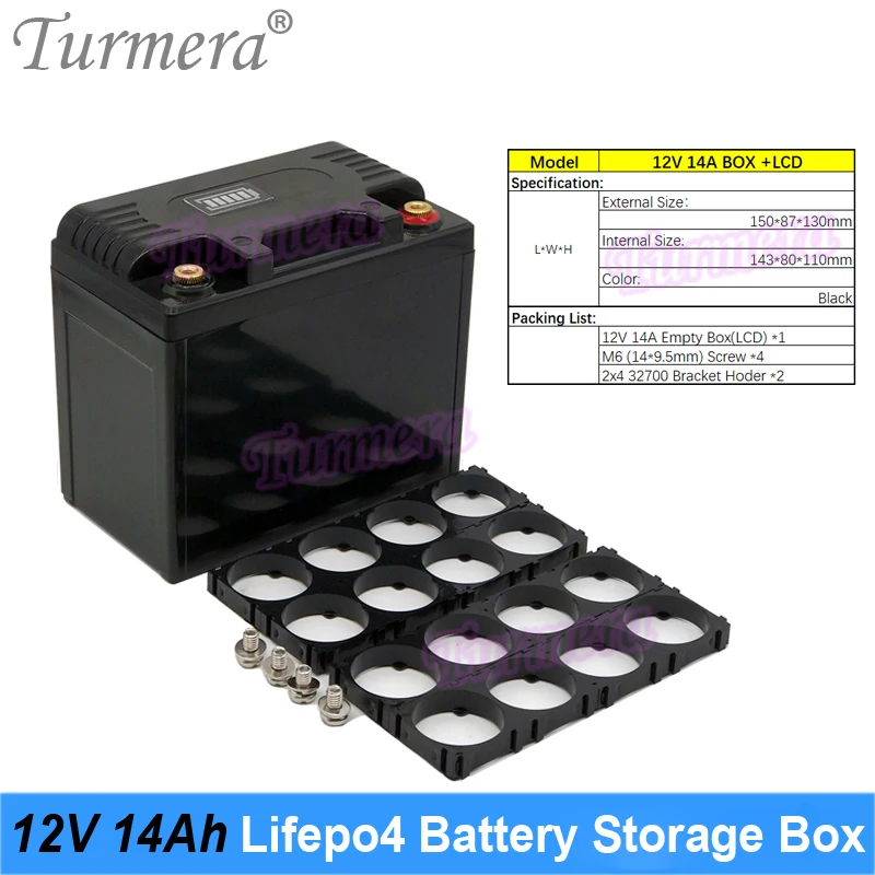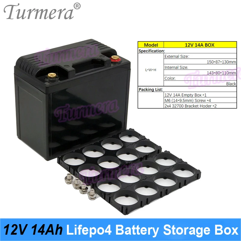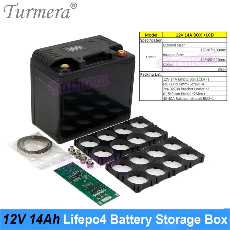 Коробка для хранения аккумулятора мотоцикла Turmera 12 в 14 А ч 12,8 В 4S 40 А, балансировочная система BMS с держателем кронштейна 2x4 32700 для замены свинцово-кислотных аккумуляторов