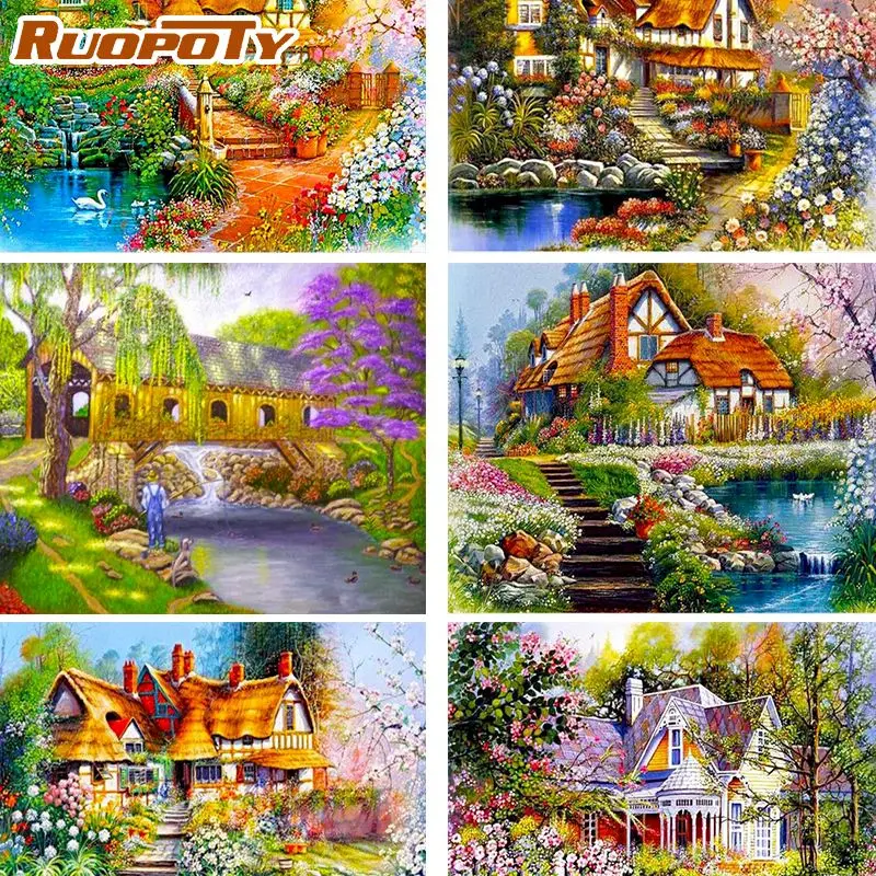 RUOPOTY Красочный дом пейзаж живопись по номерам ручной работы уник...
