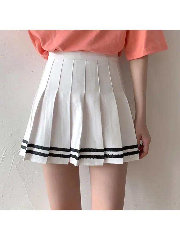 Женская короткая юбка с завышенной талией Y2k, повседневная облегающая эластичная плиссированная школьная мини-юбка-трапеция в полоску в Корейском стиле Харадзюку на лето