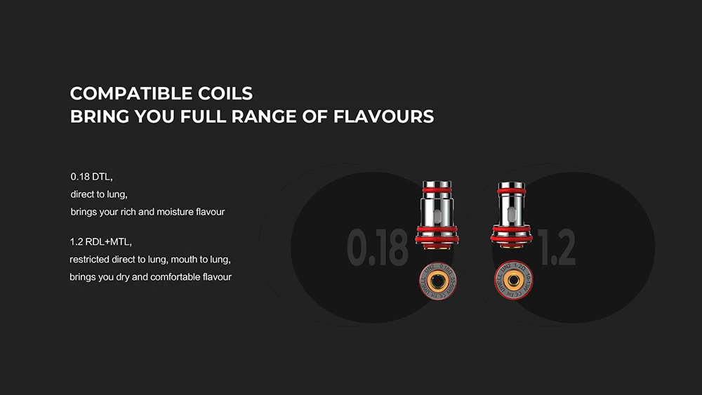 Meshed 0.18ohm катушка для DTL vaping, meshed 0.2ohm катушка для RDL & MTL vaping Спецификация: Сетка 0,18 Ом (55 Вт-60 Вт), сетка 1,2 Ом (10 Вт-13 Вт)