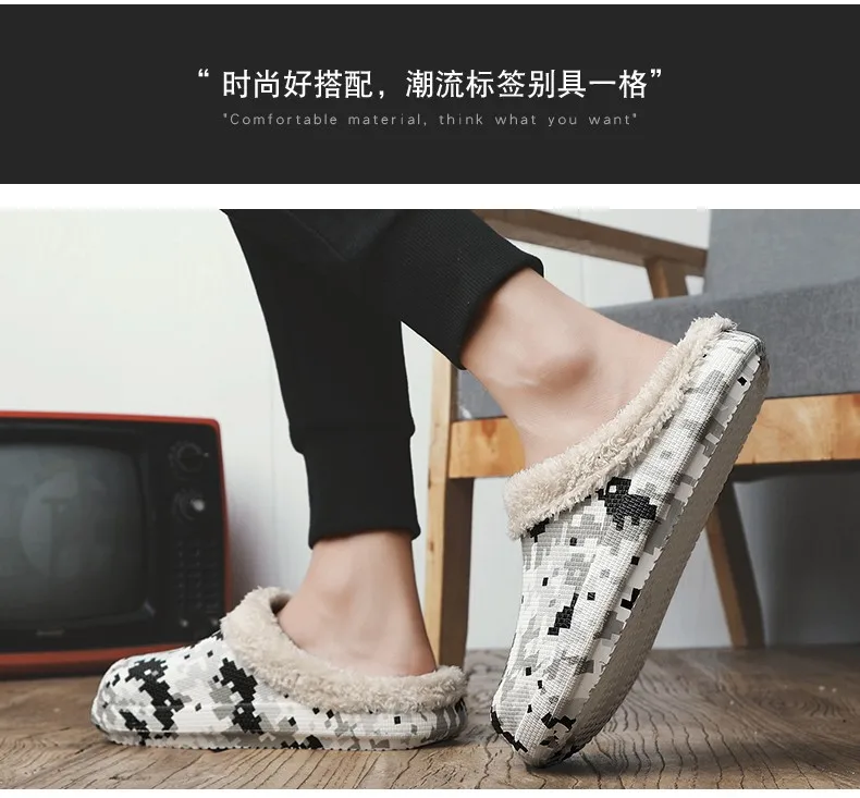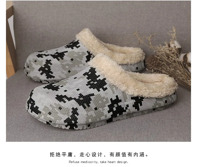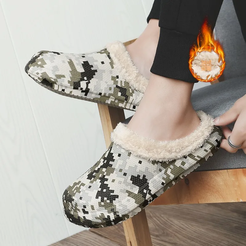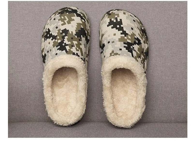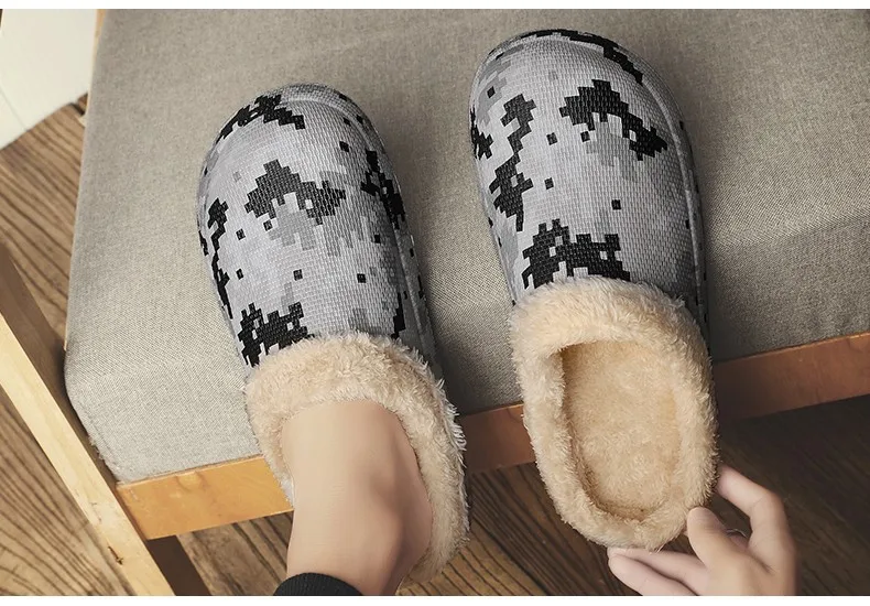 Мужские зимние хлопковые тапочки для дома, водонепроницаемые Нескользящие хлопковые тапочки, новая камуфляжная теплая Съемная толстая подошва