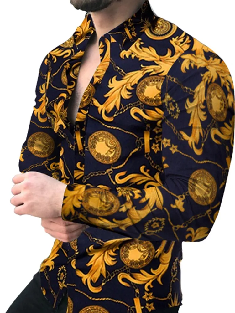 Рубашка мужская с длинным рукавом, модная блуза с винтажным принтом...