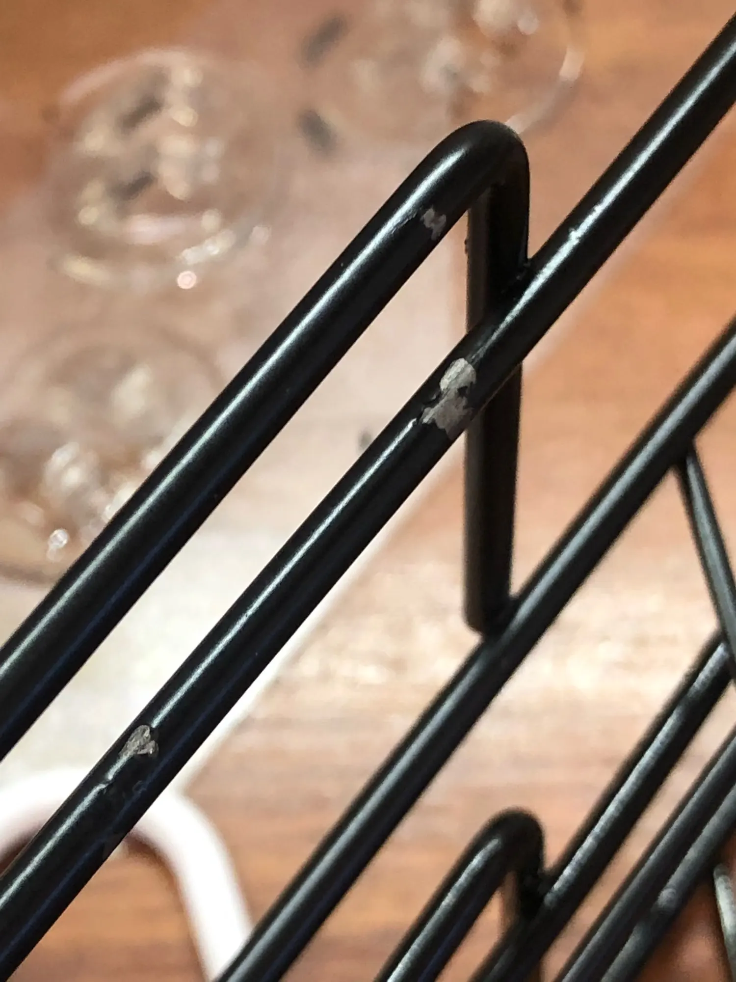 Упаковка, ее нет, полки погнулись и краска местами отвалилась,