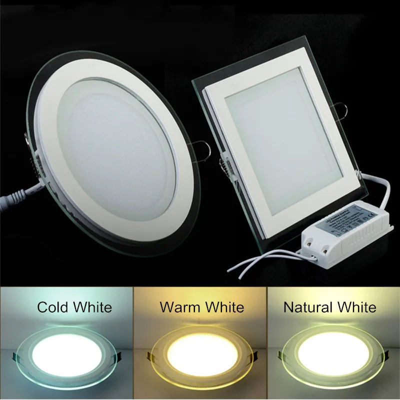 6W 9W 12W 18W Круглый/квадратный стеклянный светодиодный светильник, Встраиваемый светодиодный потолочный светильник, Точечный светильник, теплый/натуральный/холодный белый/3 цвета