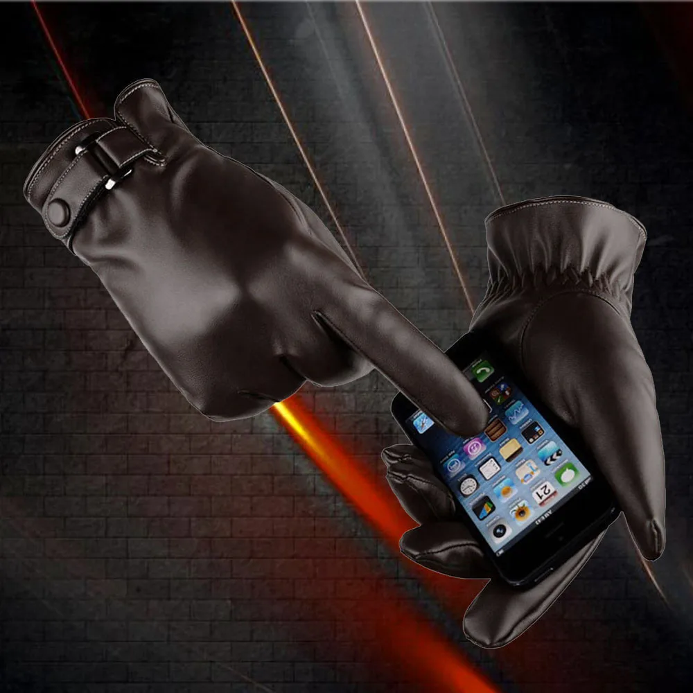 Мужские Зимние Оригинальные кожаные варежки с закрытыми пальцами для сенсорного экрана, уличные лыжные велосипедные термоводонепроницаемые перчатки
