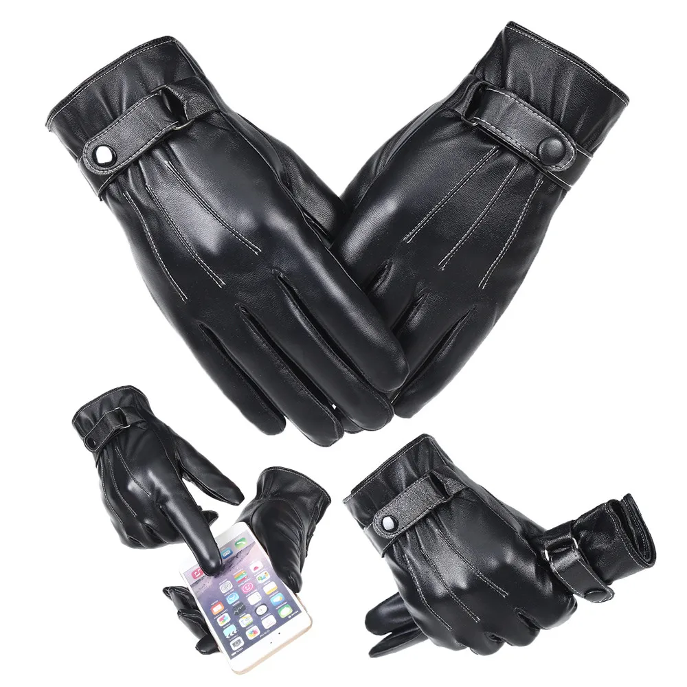 Мужские теплые зимние спортивные кожаные перчатки