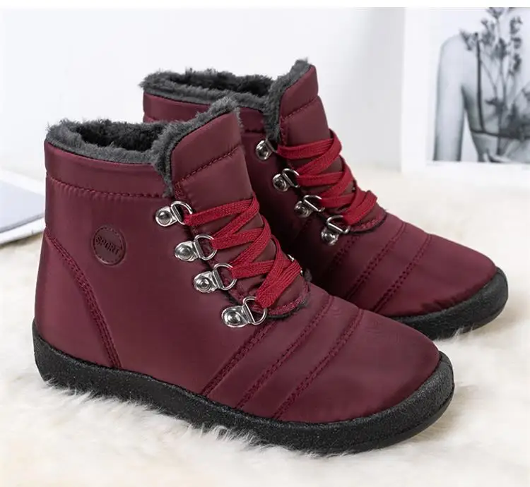 Женские теплые ботинки, водонепроницаемые ботильоны на плоской подошве с перекрестными ремешками, удобная обувь для снега, 2021