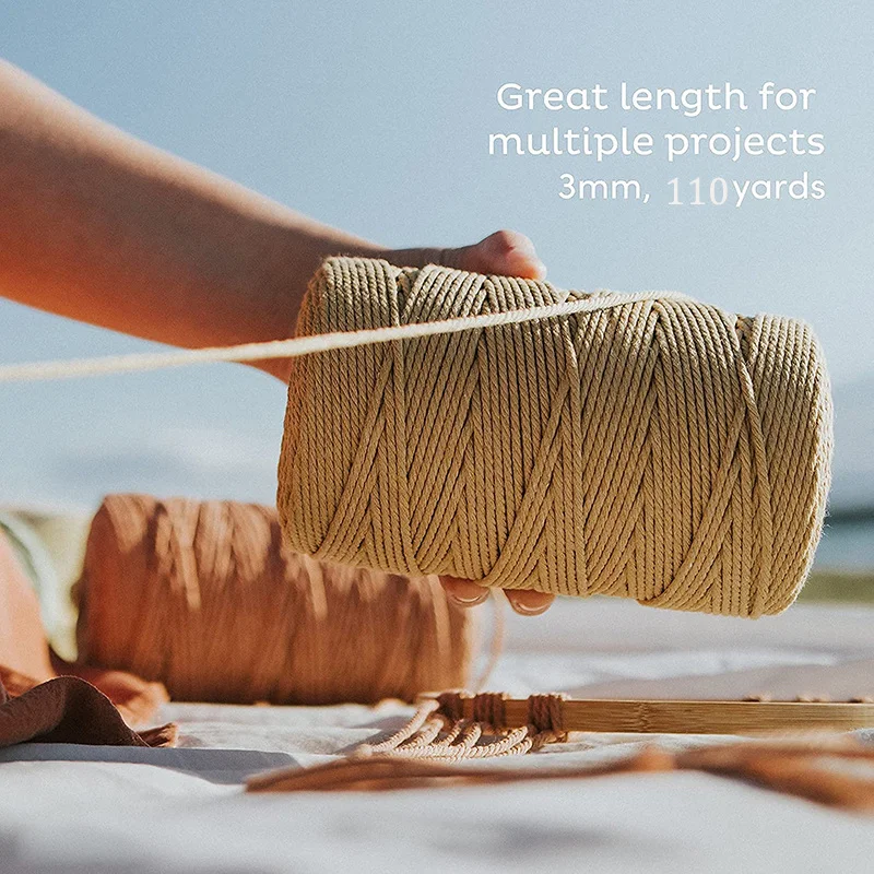 Плетеная веревка из 100% хлопка, 3 мм, 110 ярдов
