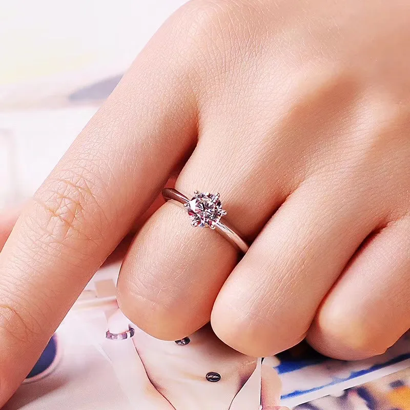Новое Moissan бриллиантовое кольцо дамское 1ct круглое 6,5 мм простой стиль