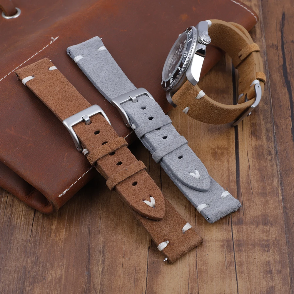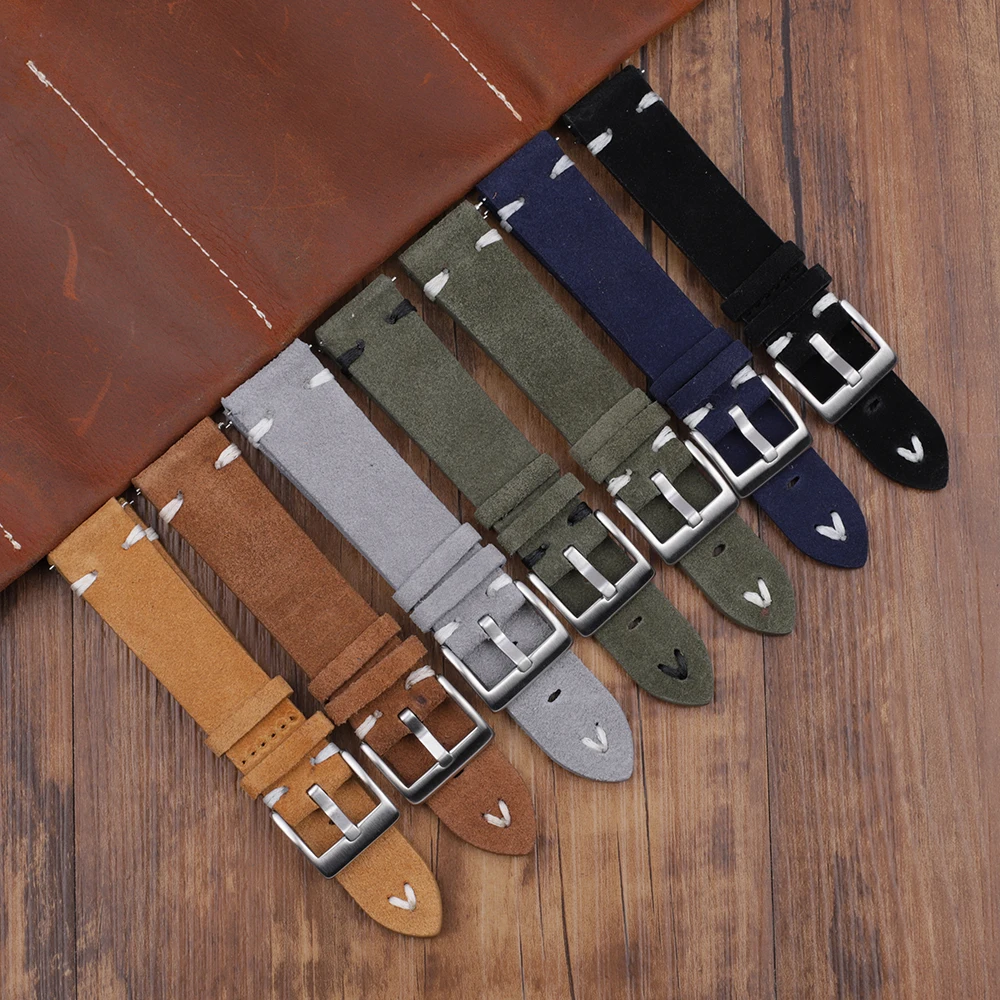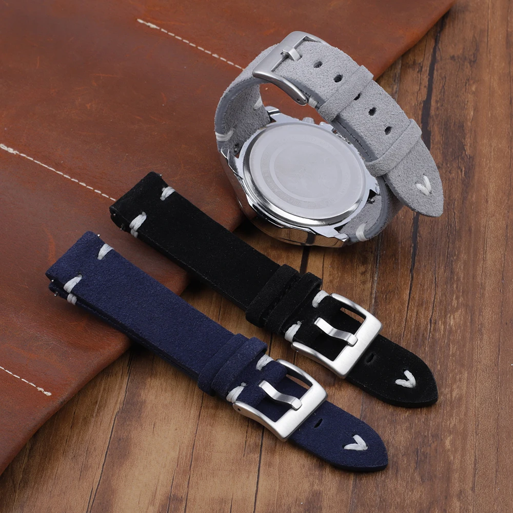Винтажный ремешок для часов из замши 18 мм 20 мм 22 мм 24 мм синие Ремешки для наручных часов сменный ремешок браслет ручной работы сшитый ремешок для часов