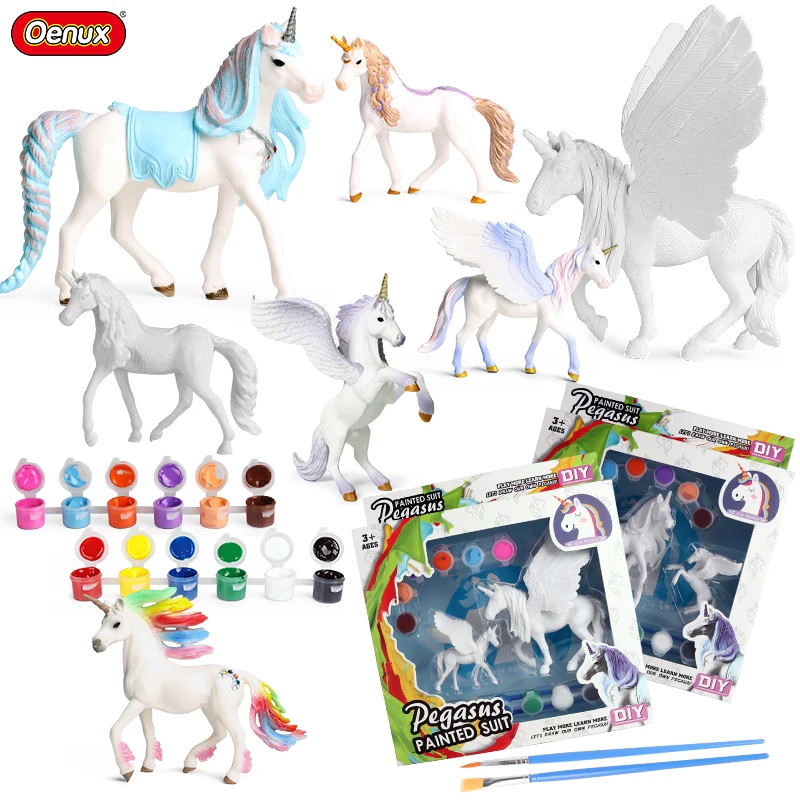 Oenux DIY акварельные граффити, игрушка-животное, 3D цветная живопись, единорог, Пегас, набор моделей, подарок для детей на день рождения, вечерние вечеринку