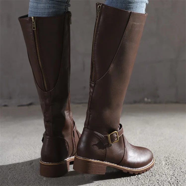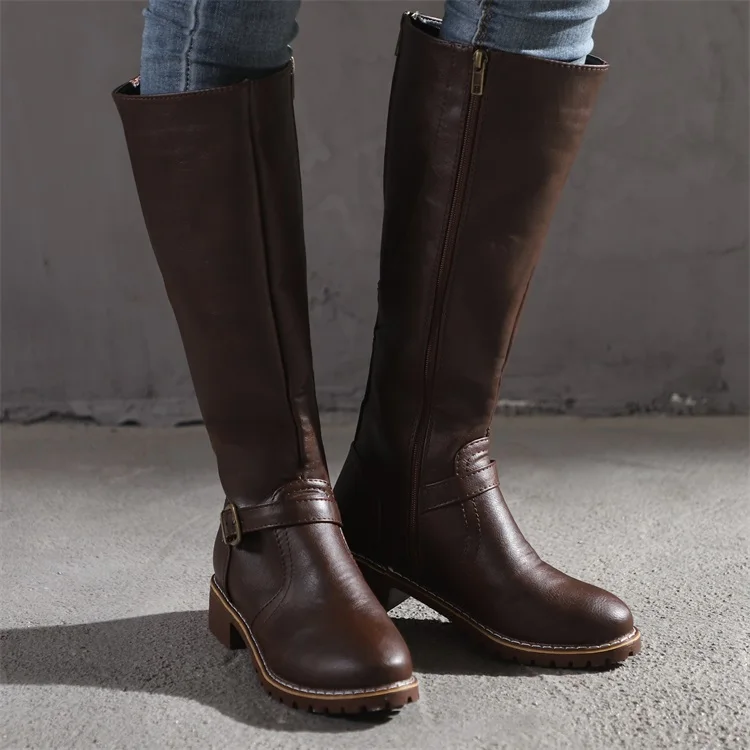 Женские сапоги до колена с молнией сзади и сбоку, однотонные модные удобные дышащие Сапоги мартинсы с круглым носком