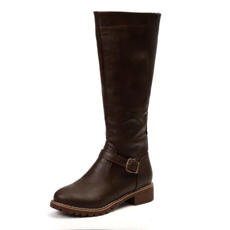 Женские сапоги до колена, на низком каблуке, на квадратной платформ...