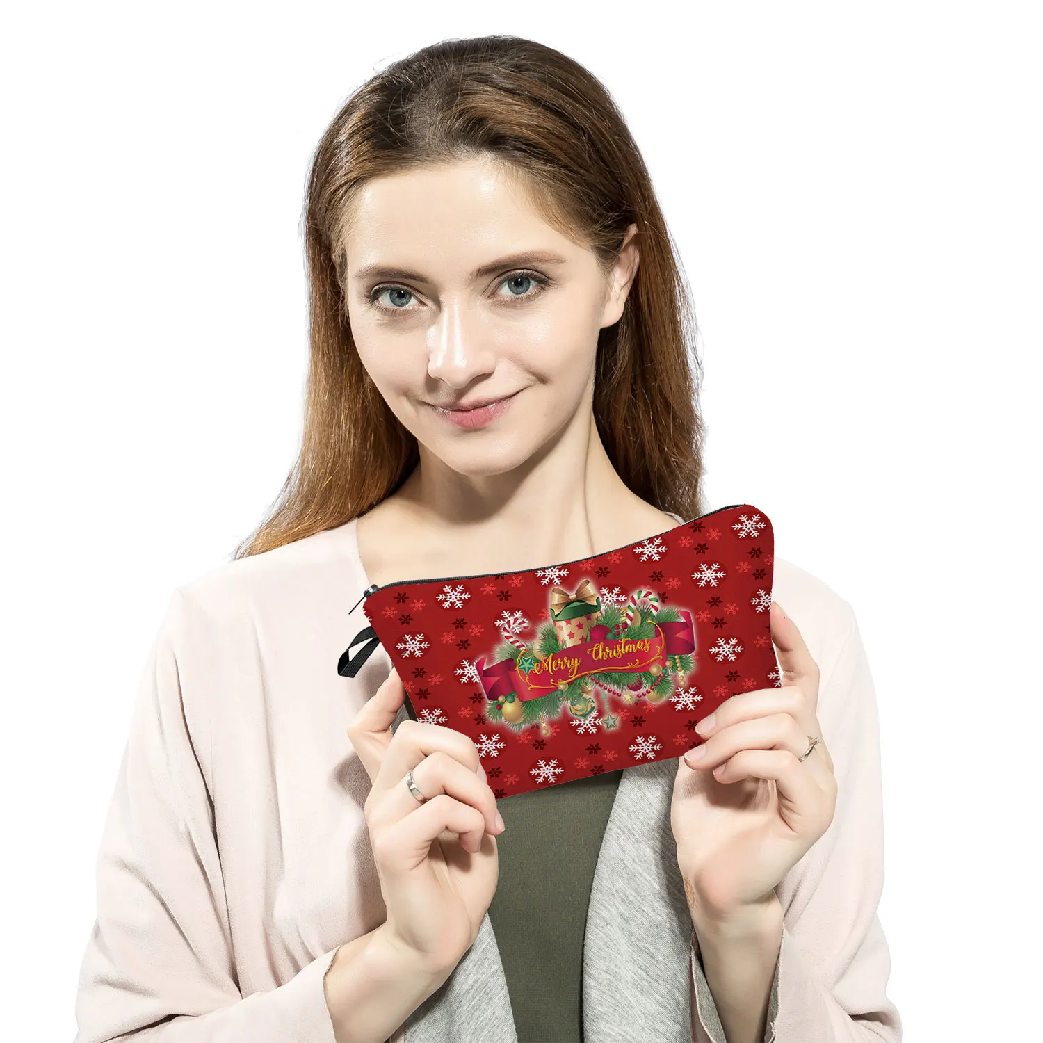Модная Рождественская косметичка с 3D принтом для женщин, вечерние сумки для макияжа в подарок, прочная дорожная сумка для туалетных принадлежностей, чехол-карандаш, женская сумка
