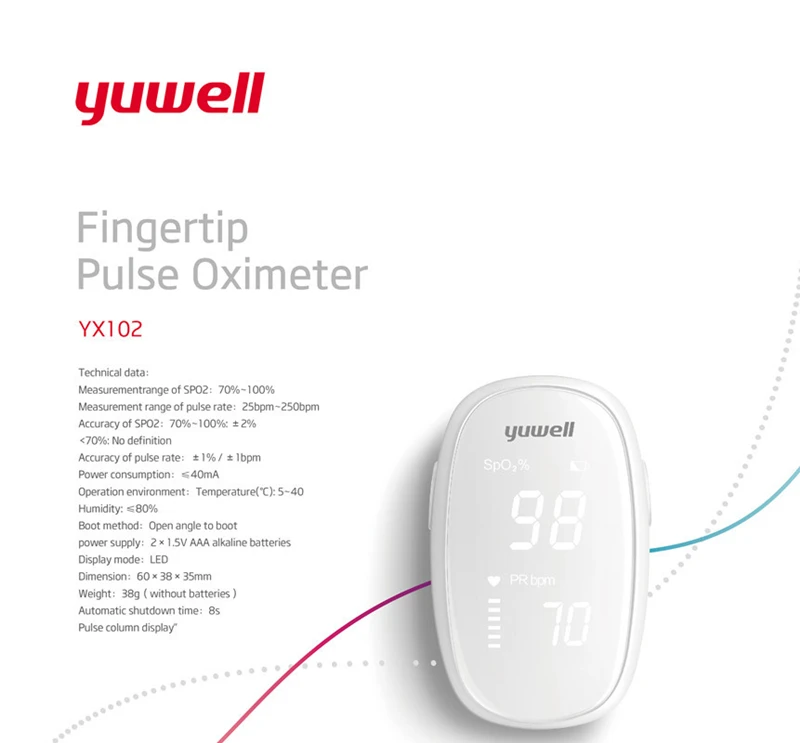 Пульсоксиметр на палец YUWELL YX102, измеритель пульса, уровня кислорода в крови