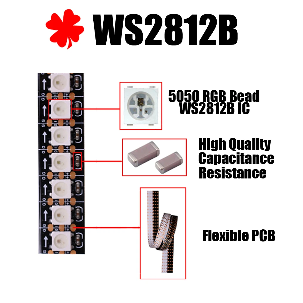 Светодиодная лента WS2812B с RGB-подсветкой, 3060144 светодиодов, IP306567, 5 В