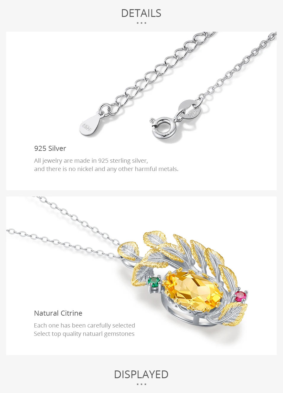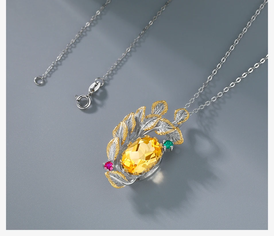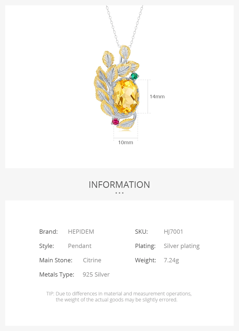 HEPIDEM ожерелье из серебра 100% пробы с кулоном из цитрина 925 пробы