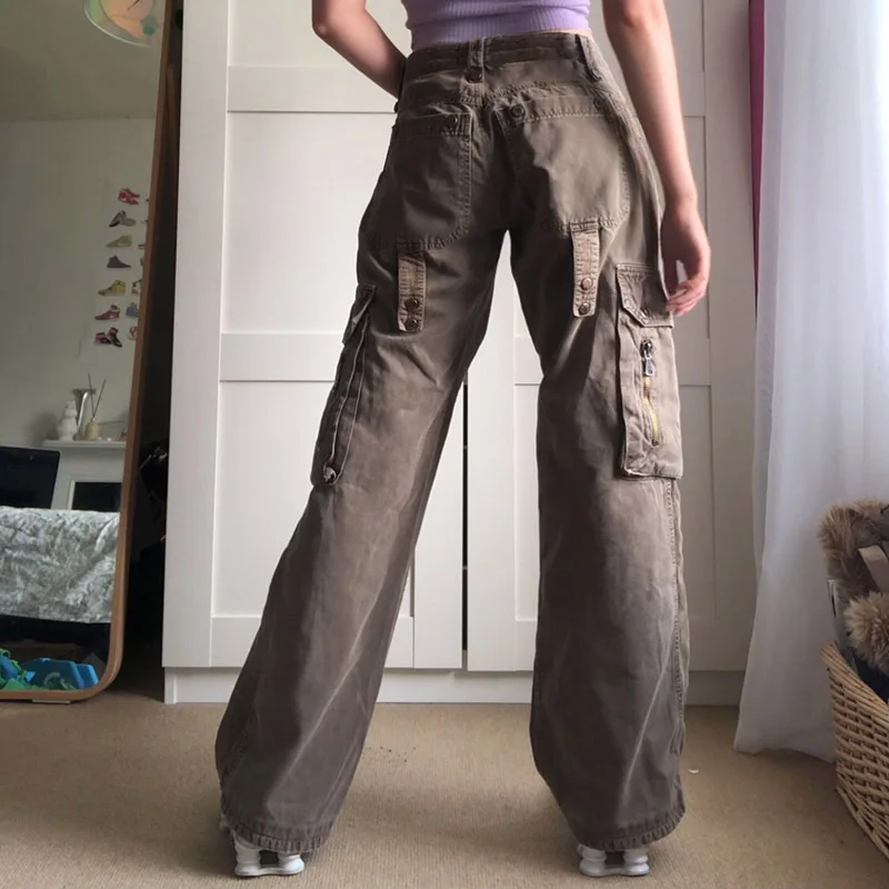 Винтажные Коричневые джинсы y2k в эстетике, мешковатые брюки-карго ...