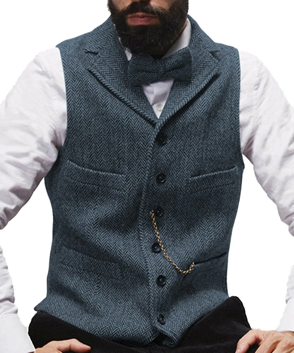Мужской твидовый костюм в стиле стимпанк, коричневый Приталенный жилет с V-образным вырезом, одежда для свадьбы