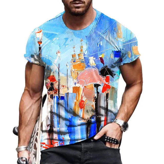 Футболка мужская оверсайз с коротким рукавом, модный топ в стиле ретро, с 3d-цифровой печатью, с круглым вырезом, лето 2021