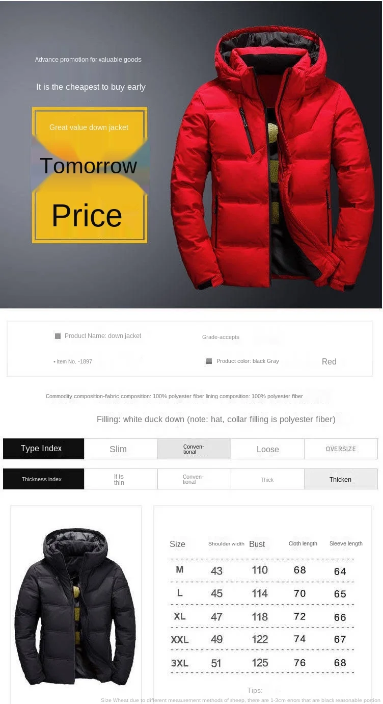 Зимняя пуховая куртка, мужские парки на белом утином пуху, Мужская ...