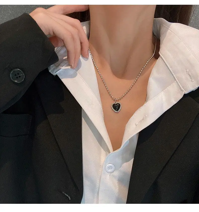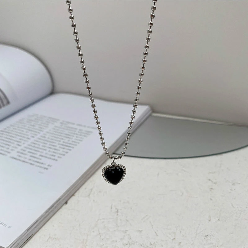 Ожерелье с черным сердцем Kpop, французская металлическая цепочка д...