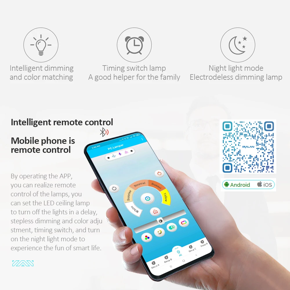 Отличный светильник, три градации света, теплый белый, холодный белый и жёлтый. Для такого размера светит достаточно ярко. В комплекте пульт, включаете светильник и на пульте сразу же жмёте кнопку Ок на 5 секунд, светильник моргнет два раза,кнопку отпускаете и пользуетесь пультом. По куаркоду в инструкции можно скачать два приложения, смысл обоих приложений идентичен, различия в приложениях если светильники этой фирмы меняют не только яркость но и цвет, в приложении можно настроить 4 светильника, к примеру в спальне,кухне,ванной и коридор и включать и выключать все сразу или каждый по отдельности. Настройка приложения так же как и пульта, включить светильник в сеть и 9ажать в приложении кнопку Ок на 5 секунд пока не моргнет.