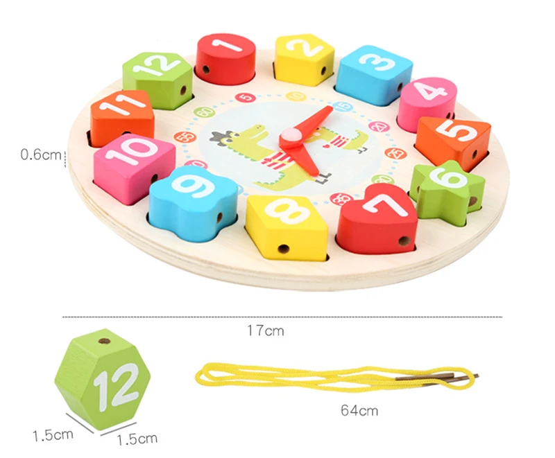1. Высококачественная твердая древесина, гладкие края, безопасные и нетоксичные. Богатые цвета, милые изображения, улучшают познавательные способности детей и способность мышления.2. Две вращающиеся руки, разные цифры соответствуют различным предметам, каждая часть является независимой пластиной, ребенок в соответствии с его формой, номером и цветом будет помещен в соответствующее положение, узнать цифры, распознает часы.3. Чтобы ребенок мог лучше понять цветовые цифры, развивая способность хватать руки, но также развивая способность мозга ребенка; Более глубокое понимание формы
