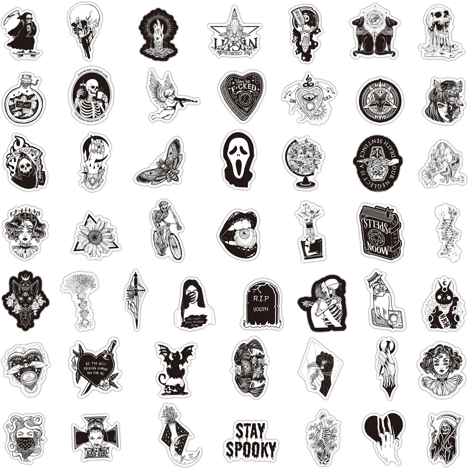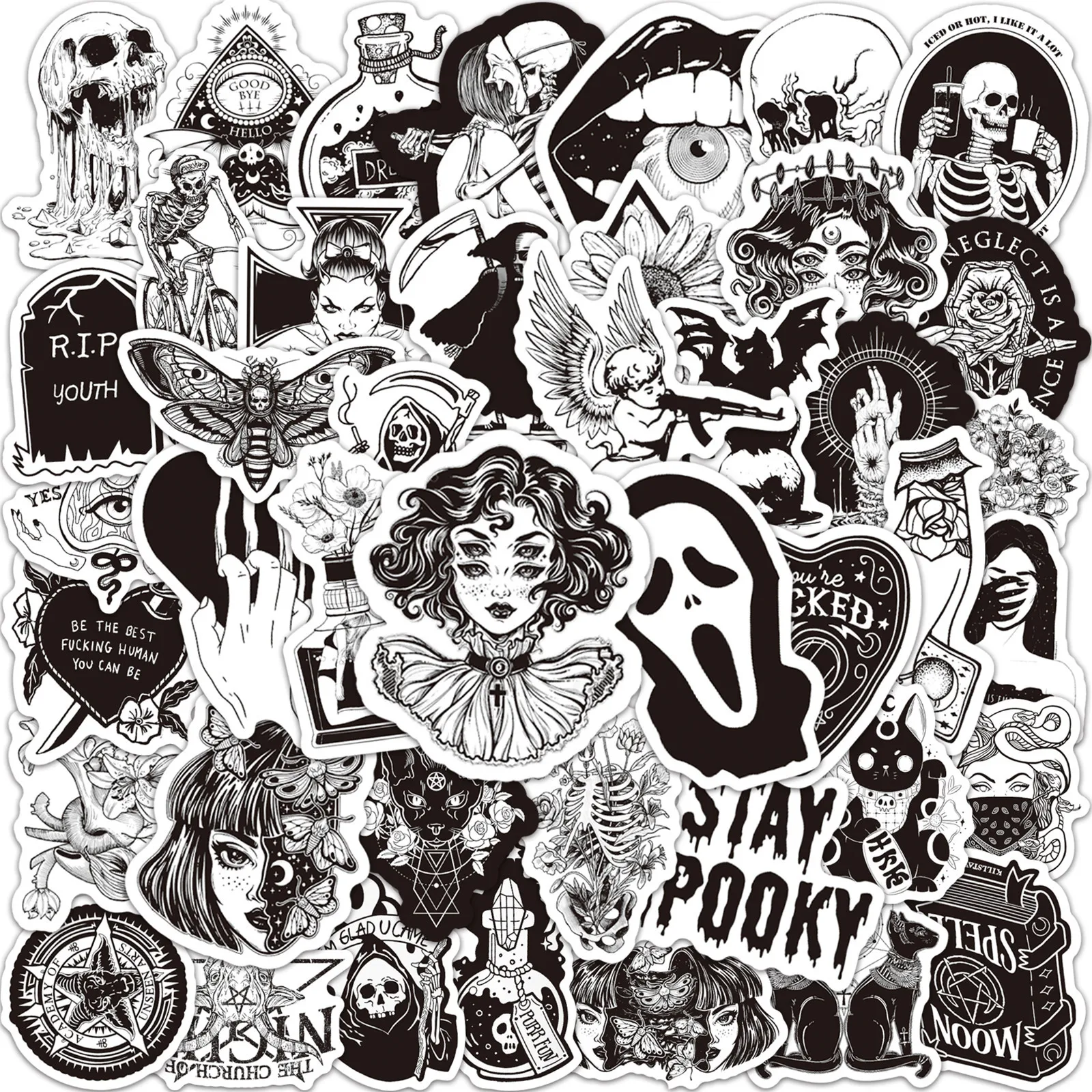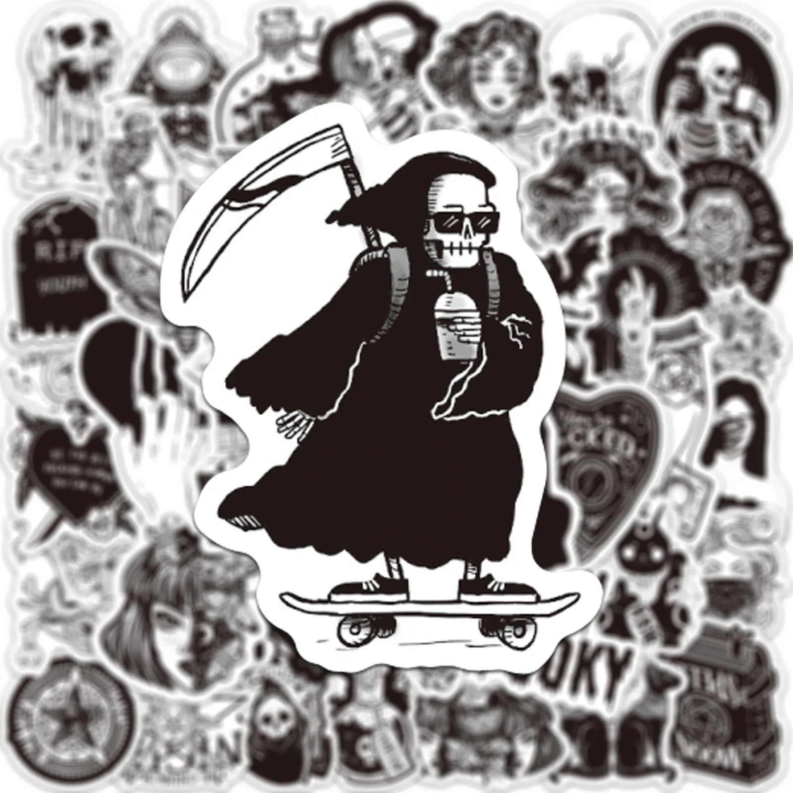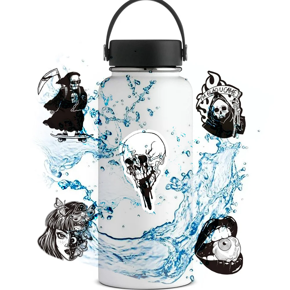 103050 шт. Новинка черно-белый готический крутой скелет граффити водостойкая наклейка чемодан ноутбук Охлаждение оптом