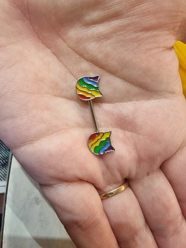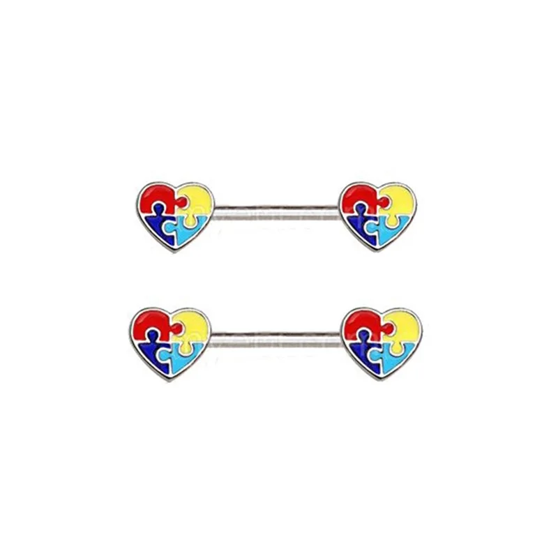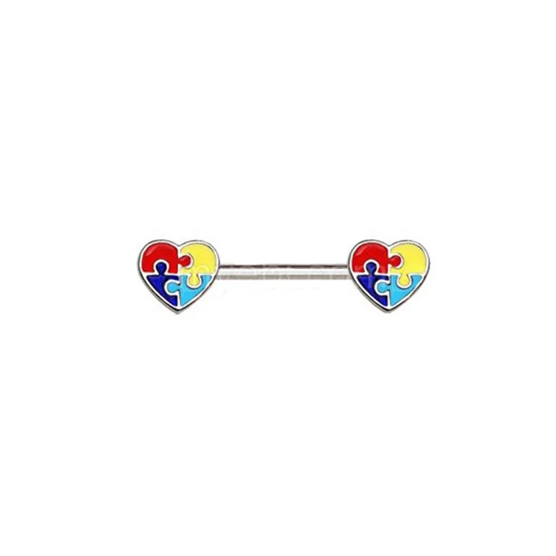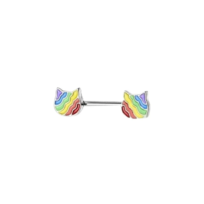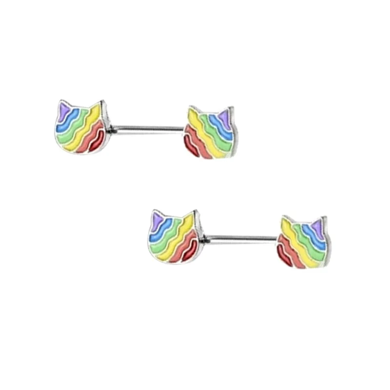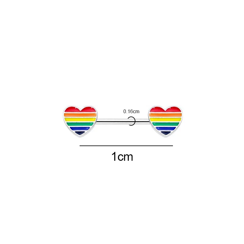 Кольца для сосков женские радужные в форме сердца и кота, Ювелирное Украшение для пирсинга сосков, 14 г, 1 пара