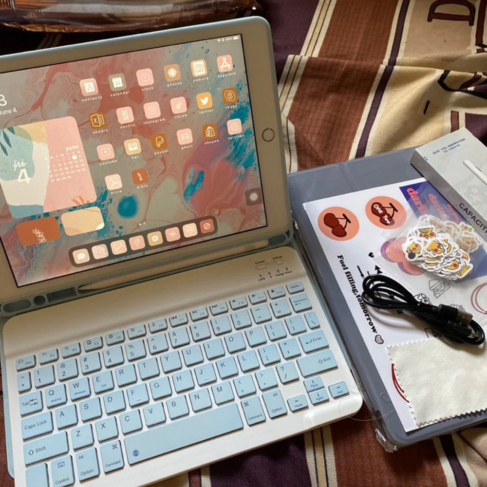 Новейший для iPad Bluetooth-совместимый защитный чехол для клавиатуры и мыши (защитный чехол + клавиатура + ручка для сенсорного экрана)