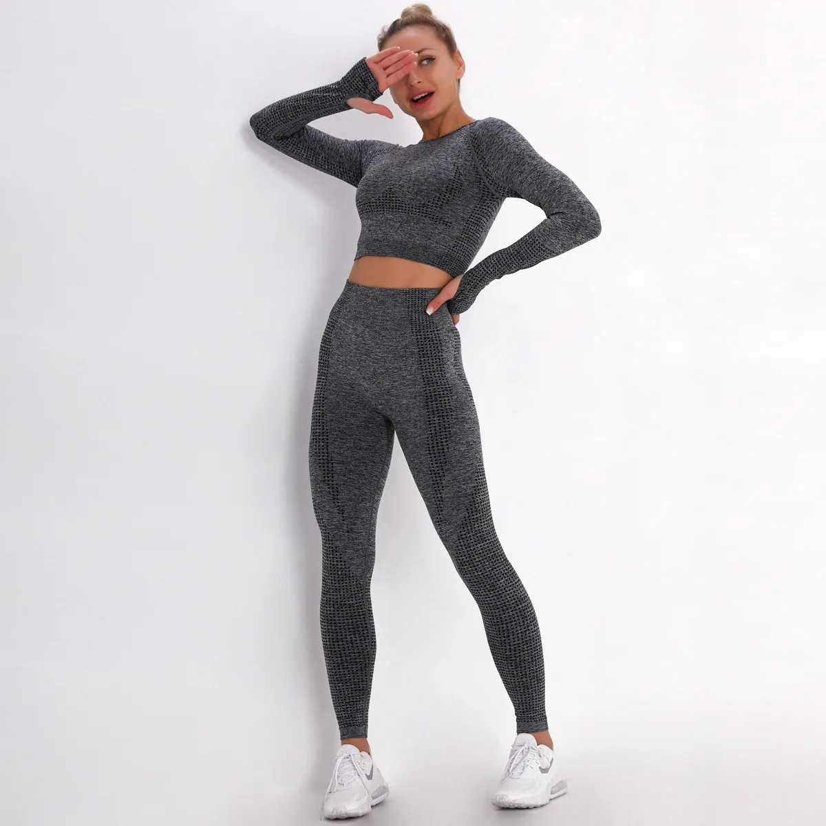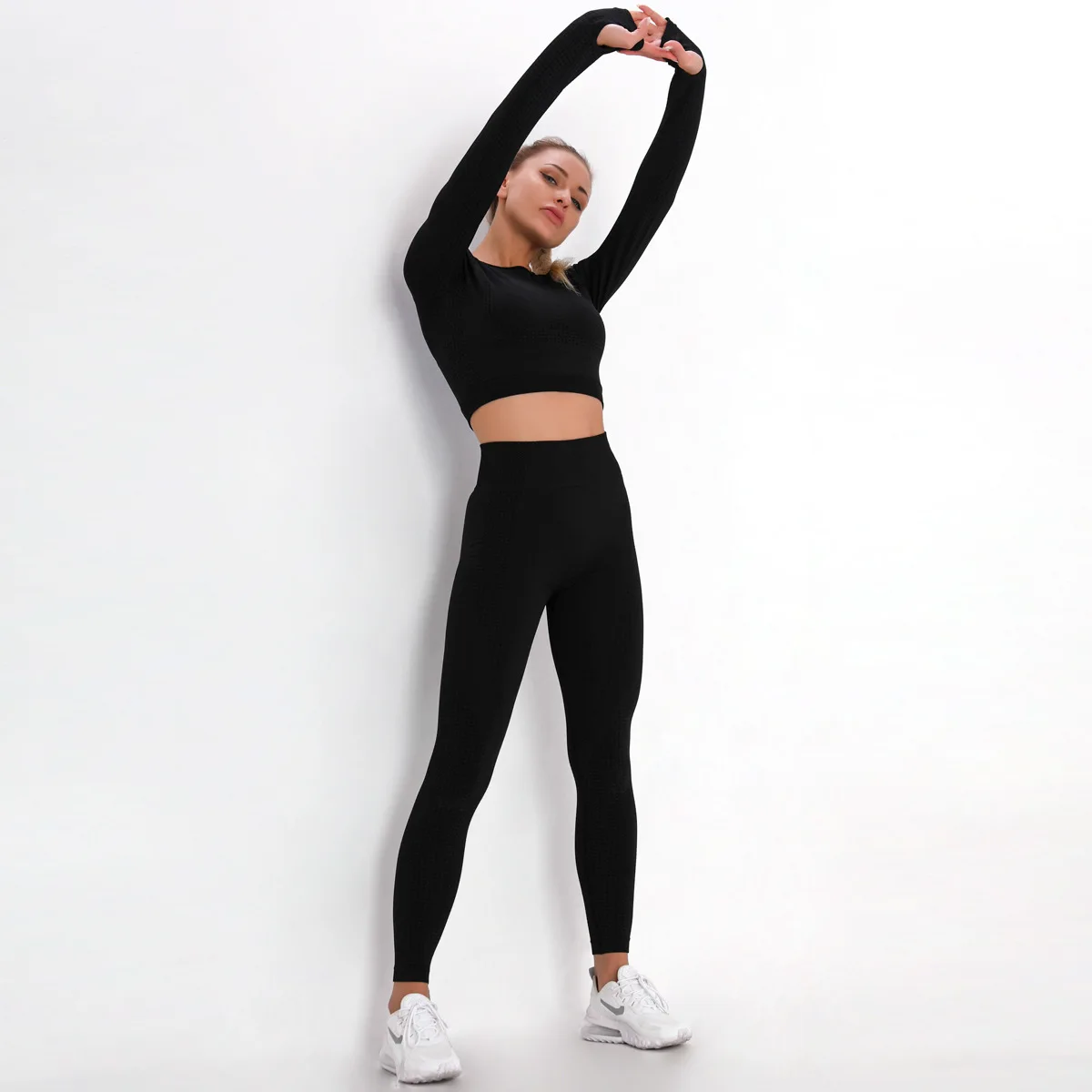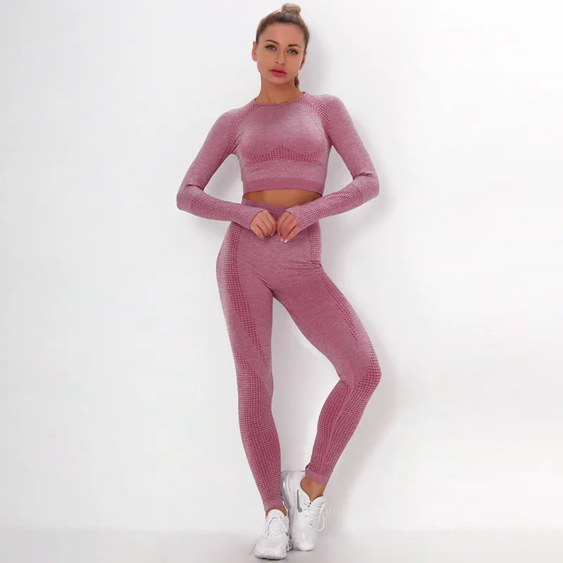Спортивный костюм, женская спортивная одежда, Быстросохнущий Дышащий тканевый комплект для фитнеса, спортивная одежда, бесшовный тренировочный костюм для спортзала